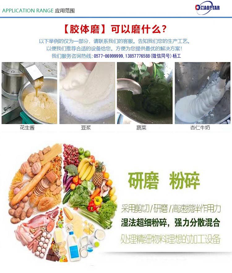 f.昊星膠體磨系列可按照客戶對加工物料的酸度、堿度、濃稠度等要求特殊定制生產(chǎn)。有此需要的客戶請?zhí)峁┰敿?xì)的技術(shù)參數(shù)。