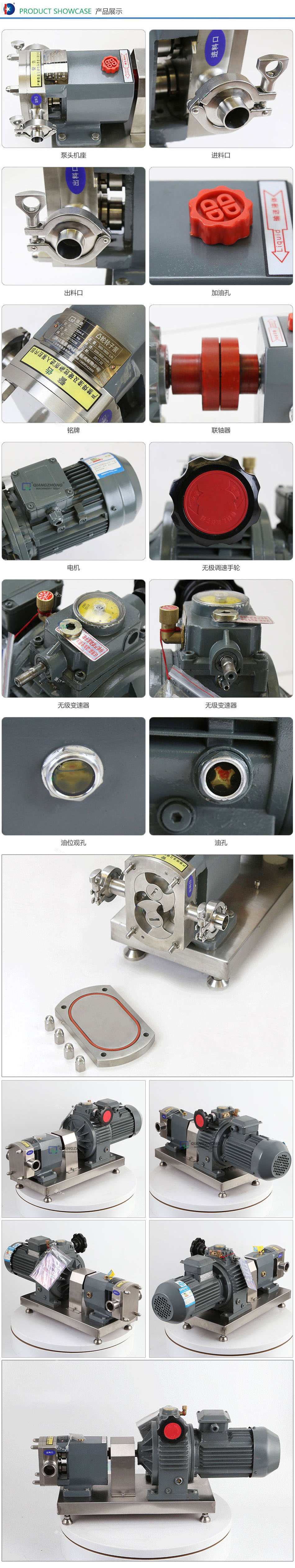 轉(zhuǎn)子泵在工作中不存在任何零件的磨損(除機(jī)械密封外),所有與物料接觸的零件均為不銹鋼制作,一對(duì)